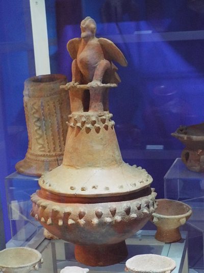 "........... Saai van kleur, maar met mooie handgreepjes op “de deksel” – dieren of mythische figuren ............."