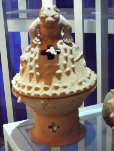 "........... en met een opengewerkt cruz indigena, dat destijds de plaats van de mens in het universum symboliseerde. ............."