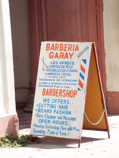"........... Deze kapper biedt zijn diensten aan in het Spaans en het Engels, want de stad is een populaire toeristische bestemming. ............."