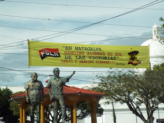 "........... vallen mij op de weg terug naar het hotel de spandoeken met revolutionaire leuzen op die dwars over de straat zijn gespannen: ............."