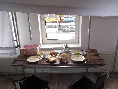 "........... Het middelste vormt in half opgetrokken toestand met de kleine voor het raam staande tafel een perfecte imitatie van een marktstal, hetgeen mooi aansluit op de markt die twee keer per week in de laan voor het huis wordt gehouden. ............."
