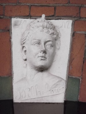 "........... Weer wat verder, boven de voordeuren van een tot op heden niet door de renovatiewoede aangetast huis, de hoofden van een jonge Koningin Wilhelmina en Prins Hendrik. Kleine juweeltjes zijn het. ............."