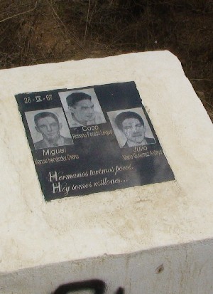 "............ Miguel, Coco en Julio lieten het leven. Gedenktekens, met hun namen beschilderde keien en voor een van hen een soort altaartje met foto’s, liggen als markeringspunten op het stoffige pad ..............."