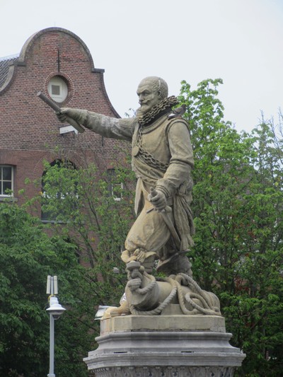 "........ het standbeeld van Piet Hein, die in zijn geboorteplaats Delfshaven stoer over de Achterhaven richting Schiemond kijkt, ............."