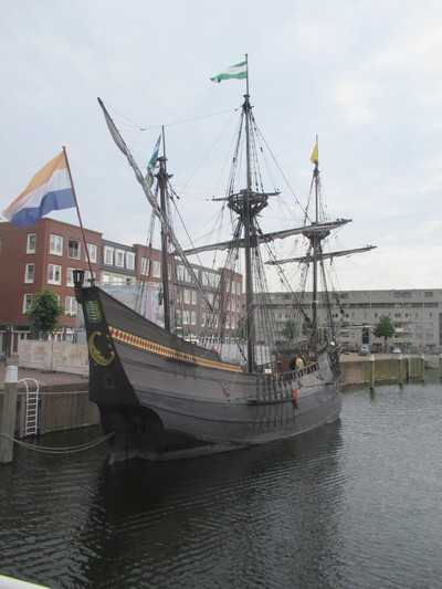 "........ ligt tijdelijk een replica afgemeerd van het VOC-schip de Halve Maen ............."