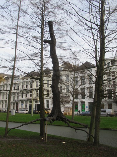 "........... verderop Elevazione van Giuseppe Penone – 4 echte bomen die een omhoog getilde bronzen boom gezelschap houden ............."