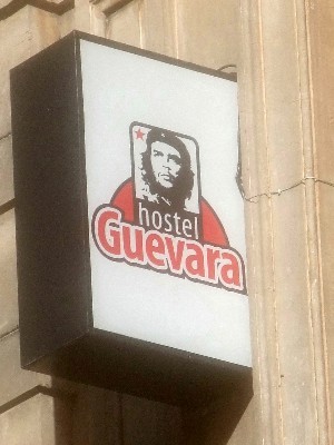 "........... Aan de overkant hangen lichtbakken met de beeltenis van Che die klanten naar Hostel Guevara moeten lokken. ............."