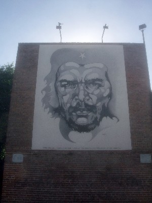"........... Een blok terug, op de Plaza de la Cooperación, een meer dan levensgrote en matig lijkende afbeelding van de doorleefde kop van Che. Wat een afgang. ............."