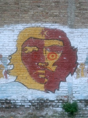"........... De blinde fabrieksmuren langs de verre kant van het terrein worden opgefleurd met Che verheerlijkende muurschilderingen. ............."