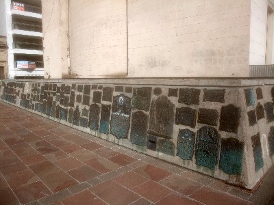 "........... staan achter de basiliek lage muurtjes die zijn behangen met de in dit land onontkoombare koperen plaquettes die de vlag en Generaal Belgrano ophemelen en evenzeer – en vast ook zo bedoeld – degenen die ze daar hebben laten bevestigen. ............."
