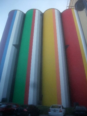 "........... sommige oude loodsen en silo’s hebben een culturele bestemming gekregen. Zoals die in stralende kleuren geschilderde silo waarin thans het Stedelijk Museum voor Schone Kunsten is gevestigd. ............."