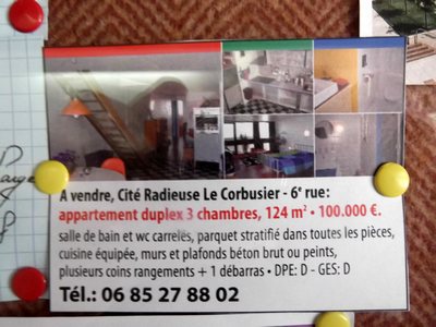 "........... Het is nog steeds een gebouw met verhuizende/verkopende bewoners gezien de te koop en te huur annonces in de vitrine in de entree én met gebreken. ............."