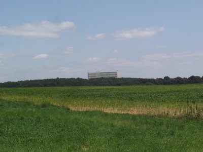 "........... Aan het begin van de landweg nog even een blik over de schouder werpen naar de Cité Radieuse die toch wel heel erg dominant en heel erg lelijk boven alles uitsteekt ............."