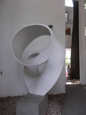 "........... gek dat beeld van Ennio Iommi, waarvan de rondingen zo contrasteren met de strakke vormen van het huis. De beeldhouwer was/is boos dat het een beetje weggestopt in een hoek op de begane grond staat. ............."