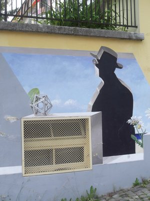 "........... waarop de meester is afgebeeld in de vorm van een zwarte schaduw. Zo'n beetje als Zorro in een Dali-landschap, ............."