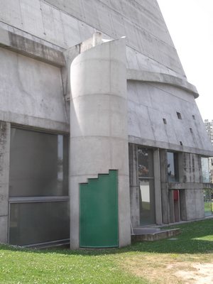 "........... Maar ondanks die enkele gekleurde buitendeur blijft het een grijs gebouw ............."