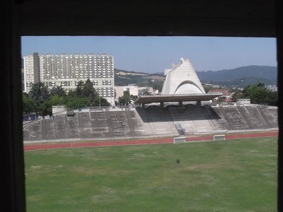 "........... Vanuit de donkere gang naar het licht kijkend, ontwaar je een soort kijkdoos die met achter elkaar liggende lagen beton is gevuld: ............."
