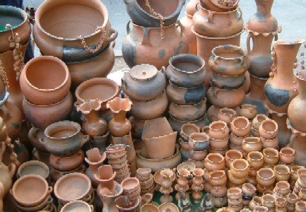 ".............Of schuilt de charme van het stadje wellicht in het ijskarretje in de vorm van een middeleeuws zeilschip met vuurrode zeilen of de aardewerk potten die langs de straat worden verkocht? Wat mij betreft wel. Daar moet hoe dan ook een ijsje worden gekocht en daar kan ik zowaar mijn Afrikaanse pottenverzameling voor het eerst met een authentieke hand gemaakte Latijns Amerikaanse pot aanvullen............"