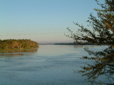 ...........Na een kilometer of vijftig trekt de mist op. Het is net alsof we ergens in Afrika rijden. Overdadig groen, brede rivieren die meanderend hun weg naar de Paraná rivier zoeken. Kano’s met half blote Afrikanen die hun netten in het water werpen ontbreken, hier wordt met de hengel vanaf de oever gevist door dik aangeklede mensen. ............