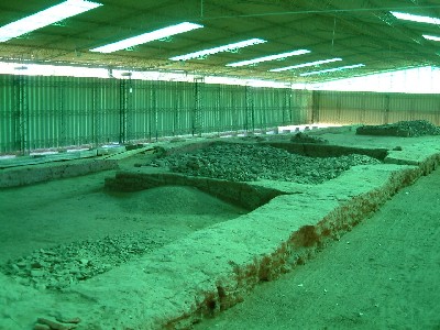 ...........Over de resten van de opgegraven gebouwen heen is een soort lichtgewicht fabriekshal gebouwd. Een lichtmetalen constructie met een dak van lelijke plastic golfplaten en, zo te zien, wanden van asbest. Van het huis van Juan González de Ataide zijn alleen de fundamenten en stapels scherven van dakpannen over. Zijn familiegeschiedenis is echter goed onderzocht en is op de wand te lezen............