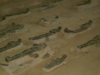 ...........In de kelderruimte van de voormalige Franciscaner kloosterkerk liggen de skeletten van hen die daar werden begraven. De kerkvloer is verdwenen, het ziet er grauw en grijs uit. De doden hebben ze destijds dus niet mee verhuisd, hetgeen mijn theorie bevestigt dat alleen wat bruikbaar was is meegenomen.