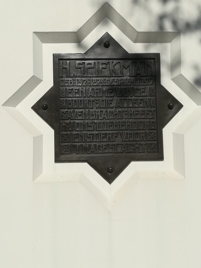 "........... Daarin staat: H.SPIEKMAN. Een arme van geboort’ / Die alleen gaven bracht / Heeft hij ons toebehoord / En stierf voor ’t nageslacht. ............."