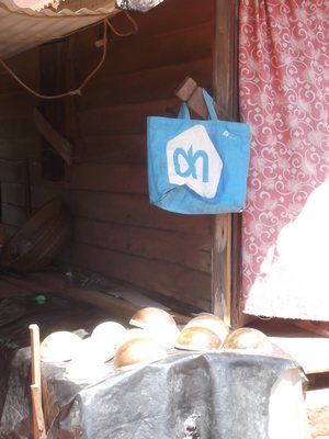 "........... dat er ver van huis aan een deurkruk de zeer herkenbare blauwe AH-tas hangt. ............."