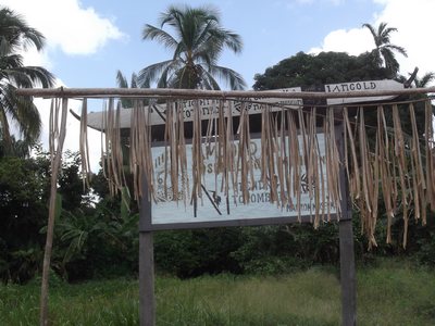 "........... Zoiets herken je gelijk als je de “azanpau” ziet, de toegangspoort tot het dorp, waarin overdwars een palmblad hangt om de boze geesten en het kwaad weg te houden. ............."