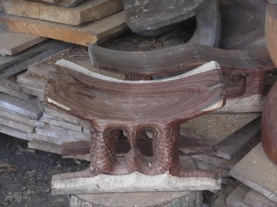 "........... lage zetels – krukjes - die goed op hun Ghanese tegenvoeters lijken, doch gevoelsmatig het mystieke missen. ............."