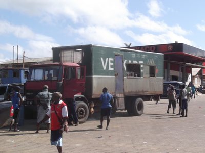 "........... Op de kade een oude laadbak van een Verkade-vrachtauto die is omgebouwd tot, ja tot wat eigenlijk? ............."