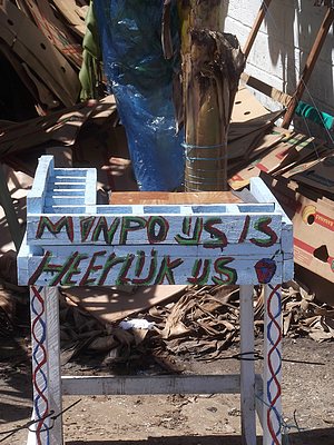 "........... Het ijskarretje naast de ingang “MUMPO IJS IS HEERLIJK IJS” is helaas onbemand en zonder voorraad, hetgeen rijkelijk wordt gecompenseerd door het heerlijke roze eten en drinken - goeloe-goeloe en dawet – van de Javaan. ............."
