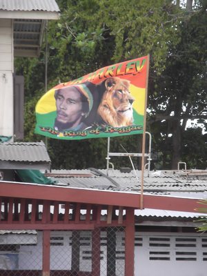 "........... Aan de overkant van het kanaal wapperen vlaggen met een afbeelding van Bob Marley, het aantal rasta's in Suriname verbaast mij echt. ............."