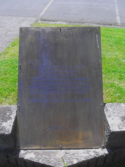 "........... Over het terrein verspreid staan op sokkeltjes kleine koperen platen waarin een gedicht of wat versregels van de naamgever van het museum zijn gegraveerd. ............."