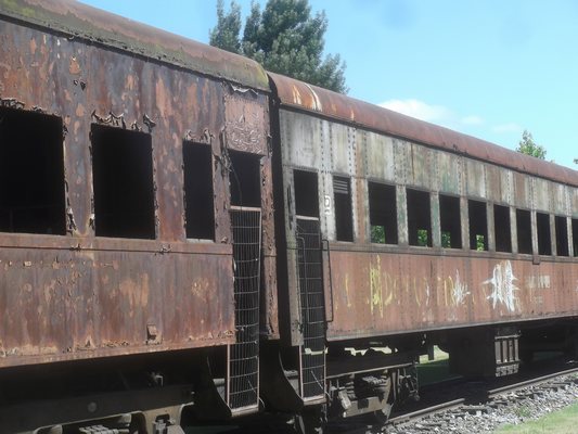 "........... Dromende en vooral weerloze roestende treinstellen zat in het museum ............."