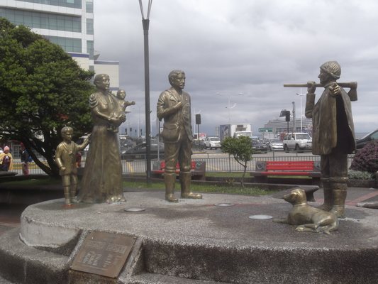 "........... IM ANDENKEN AN DIE DEUTSCHEN EINWANDERER – met daaronder de namen van de families die op 28 november 1852 met het schip de Susanne arriveerden en hier aan wal stapten. ............."