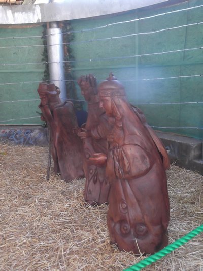 "........... met ernaast uiteraard hardhouten beelden van de Drie Koningen ............."