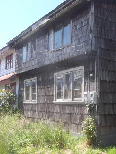 "........... Langs de weg staan nogal wat traditionele houten huizen zoals ik die van het verderop gelegen eiland Chiloé ken, ............."