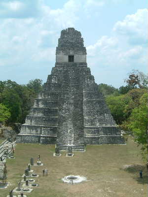 "........... De tempel aan de overkant, die soeverein en stoïcijns de boel in de gaten houdt, maakt de meeste indruk op me. Een grote grijze massa stenen met trappen die tot in de hemel lijken te reiken. Hoe hebben de Mayas’s die niet eens over het wiel beschikten dit voor elkaar gekregen? Pure wilskracht, slavenarbeid? ..............."