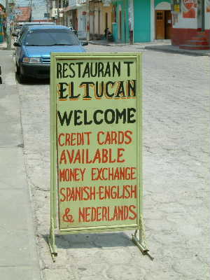 "........... Op een bord voor restaurant “El Tucan” staat dat er Nederlands wordt gesproken. Dat wil ik wel eens horen. ..............."