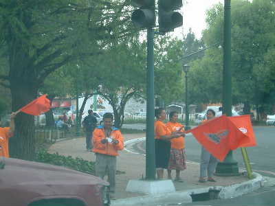 "........... Bij de verkeerslichten van de Plaza de España staan met vlaggen zwaaiende aanhangers van de Partido Patriota. Ik krijg een spontane “A-H Erlebnis”, want in Rio de Janeiro deden ze dat ook tijdens de verkiezingscampagnes. Globalisering kent duidelijk geen grenzen ..............."