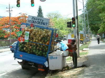 "..................Tegenover “Queen’s Royal College” drinken we cocoswater uit de noten die aan de rand van de Queen’s Park Savannah vers uit de laadbak van vrachtauto’s worden verkocht........................"