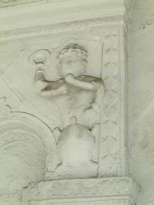 "..............De details van de hindoegoden in het stucwerk van de gevel zijn vervaagd omdat ze te vaak zijn overgekalkt. ..............."