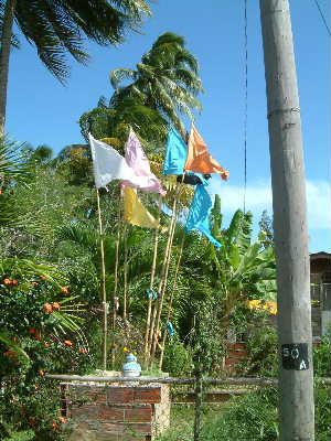 "..............Die vlaggen representeren een mannelijke of vrouwelijk Hindoegod, aan wie een gebeden verzoek wordt of is gedaan. Lichte kleuren representeren een vrouwelijke godheid, de donkere een mannelijk, zo wordt mij onderwezen. Dat vermoedde ik al. ...................."