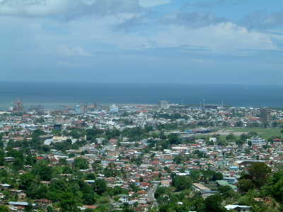 "..............We rijden eerst naar de Lady Young Look Out vanwaar er een mooi uitzicht over Port of Spain is. Vanuit de hoogte op de hoofdstad neerkijkend, is goed te zien dat het inderdaad een kleine stad is. .................."