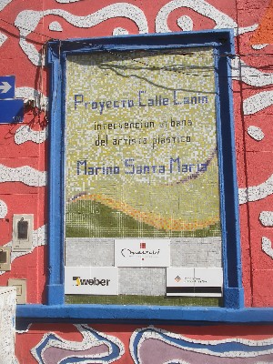 "........... In een gevellijst aan het begin van de straat annonceert de kunstenaar zijn werk met van die kleine mozaÏksteentjes. Een weinig belovende handtekening van de lulligste soort. ............."