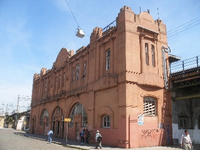 "........... Aldus beland ik bij het oude stationnetje uit de 19e eeuw met een façade die dezelfde roze kleur heeft als het Casa Roasada. Slechts dankzij het vakmanschap van destijds staat het nog overeind. ............."