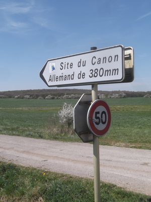 "........... Terug naar de doorgaande weg, waar na een paar kilometer een wegwijzer staat met het intrigerende opschrift: Site du Canon Allemand. “Dat is moet de legendarische Dikke Bertha zijn”, schiet er door mijn hoofd. ............."