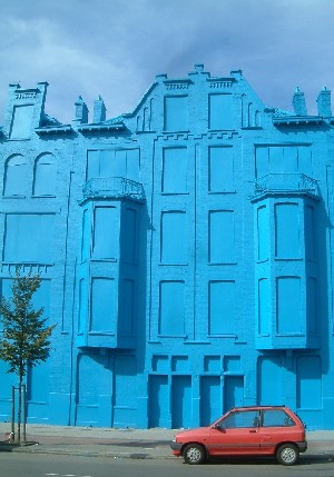 "............. Eerlijk gezegd ziet dat stukje Beukelsdijk er sindsdien een heel stuk aantrekkelijker uit dan toen de huizen nog werden bewoond. Het kunstwerk heeft op de rustige uren van de dag de surrealistische uitstraling van een schilderij van Magritte. Een verlaten straat met hier en daar een object. Hier en daar een boompje en de rode auto die er vrijwel altijd staat geparkeerd. Zou die aftandse Fiat soms onderdeel zijn van het kunstwerk? ............"