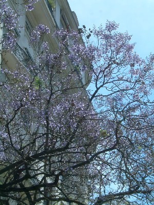 "...........Om maar niet te spreken van de paarse pracht van de jacaranda’s die Buenos Aires in november zo mooi opfleuren. Daar kunnen zelfs de mooiste kunstbloemen niet tegenop.............. "
