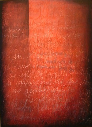 ".........Als we naar het met vlammend rood geschilderde “Suspiro de pasión - hartstochtelijke zucht” staan te kijken, fluistert de dame die me gezelschap houdt “Rood is de kleur van de hartstocht.” Heel toevallig heeft zij haar haren in dezelfde mooie donkerrode kleur geverfd als die langs de randen van het schilderij. ..........."